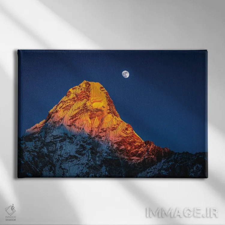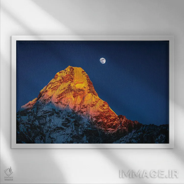 وقتی چیدمان را با دقت میچینید، «اورست و ماه در ساعت آبی هیمالیا نپال (قسمت سوم)» اثرِ «الکس جی پرز» تضادهای رنگی را خوشقوارهتر میکند؛ برای فضاهایی که میخواهید مرکز توجه داشته باشند پیشنهاد میشود. در کنار نورپردازی نقطهای، جلوهاش حرفهایتر میشود.