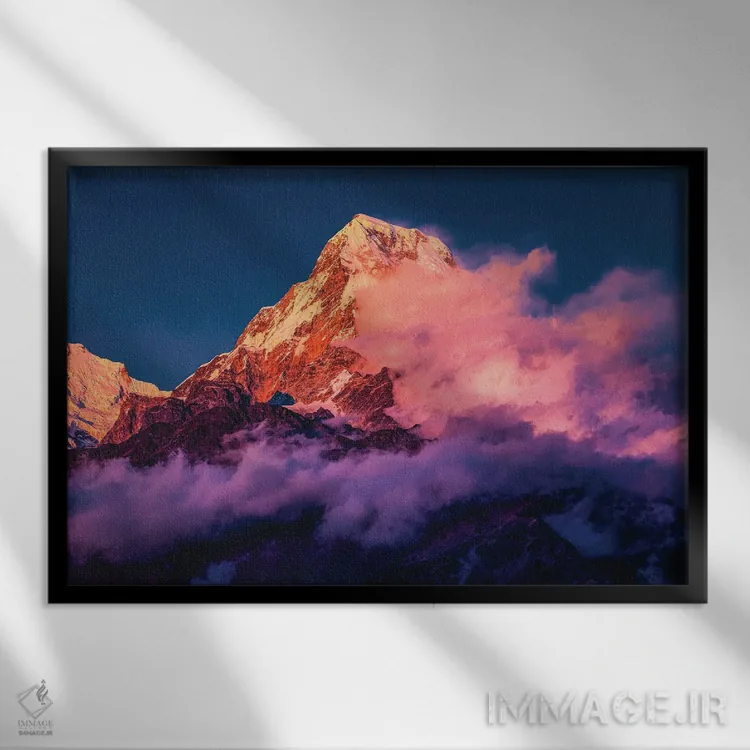 تابلو غروب قله اورست هیمالیا نپال (قسمت سوم) اثر الکس جی پرز - نمای قاب‌دار مشکی