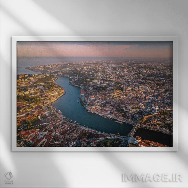 برای فضاهای آرام و مینیمال، یک منظرهی خوشساخت همیشه جواب میدهد—«طلوع مرکز شهر پورتو پرتغال از بالا» اثرِ «الکس جی پرز».