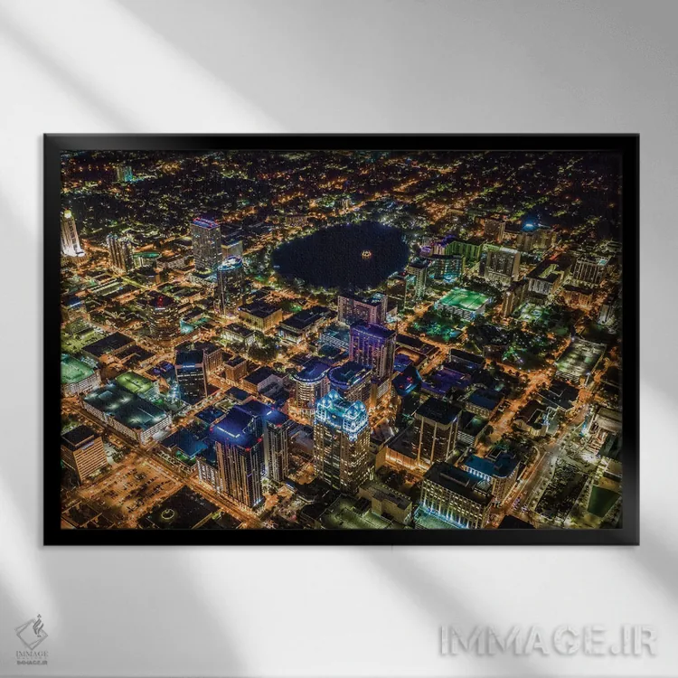 «دریاچه ایولا مرکز اورلاندو فلوریدا از بالا» اثرِ «الکس جی پرز» یک تصویر تمیز و دقیق از این اثر است؛ مناسب دکورهای مدرن و مینیمال.