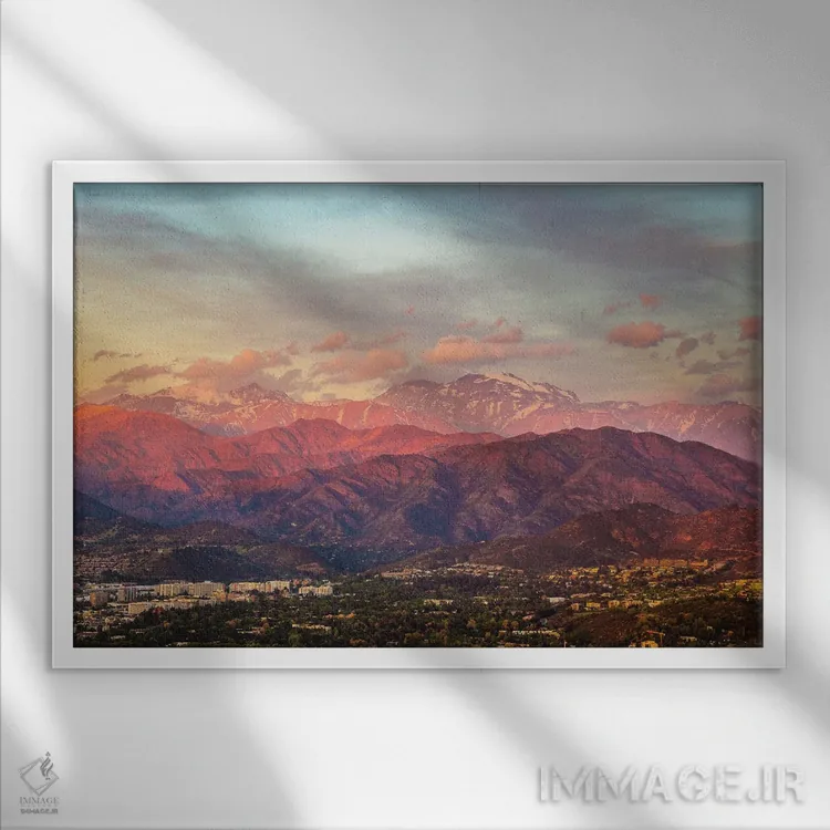 تابلو کوه‌های سانتیاگو، شیلی در غروب اثر الکس جی پرز - نمای قاب‌دار سفید