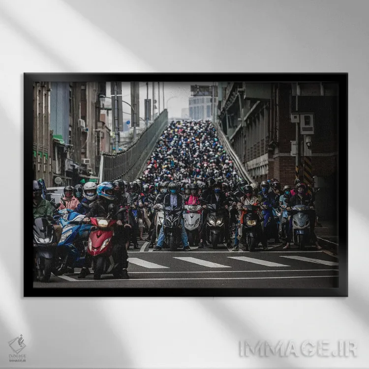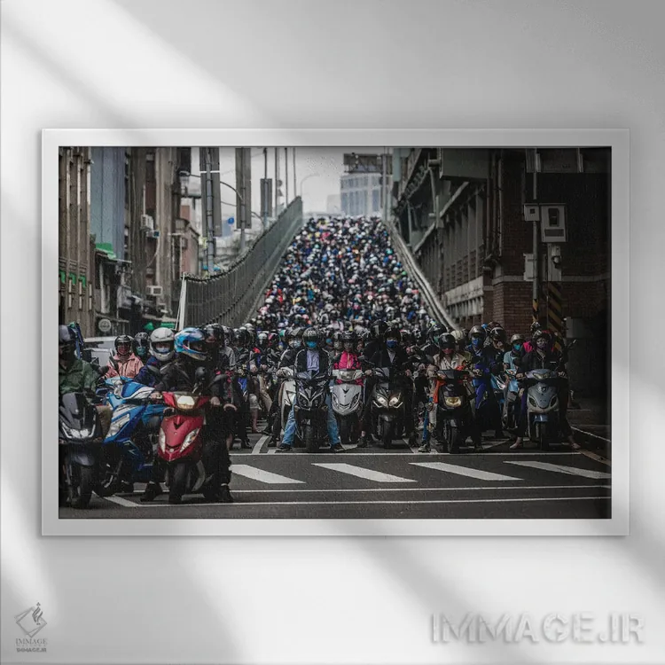 برای سلیقههایی که به جزئیات احترام میگذارند، «خیابانهای شلوغ تایپه با اسکوتر (۱)» اثرِ «الکس جی پرز» فضا را روشنتر و زندهتر نشان میدهد؛ برای راهروها و ورودیهای مینیمال پیشنهاد میشود. اگر میخواهید یک اثر همیشه «بهروز» بماند، انتخاب خوبیست.