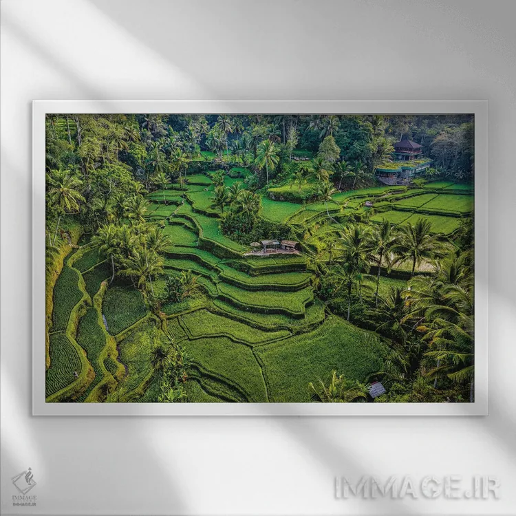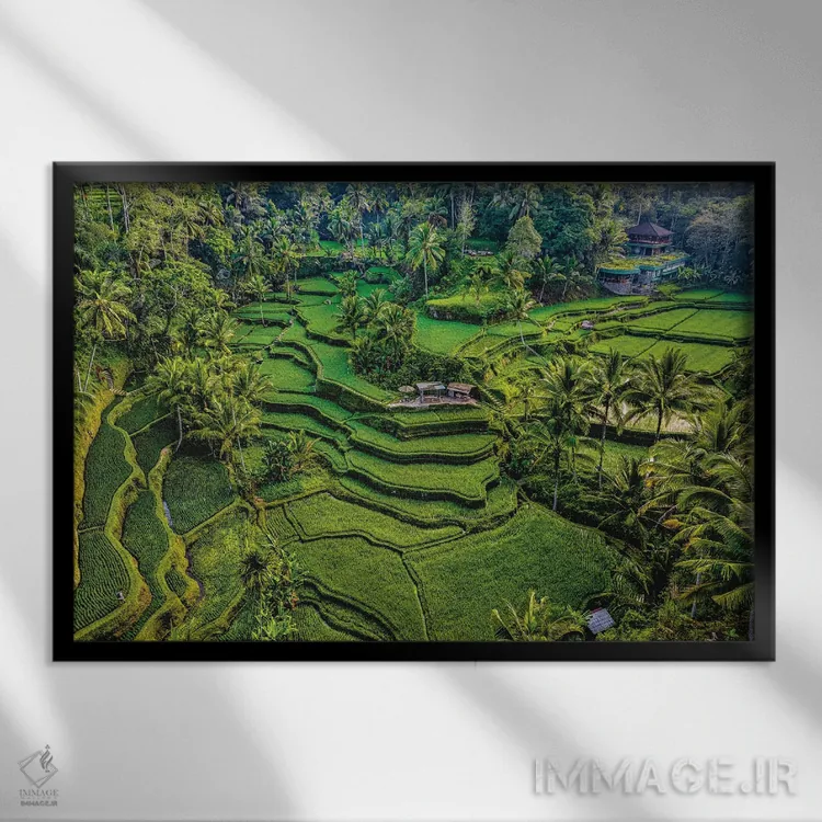برای نشیمن یا دفتر کار، «تراس زیبای برنج اندونزی شماره ۶» اثرِ «الکس جی پرز» با موضوعِ این اثر یک نقطهٔ کانونی آرام و شیک میسازد.