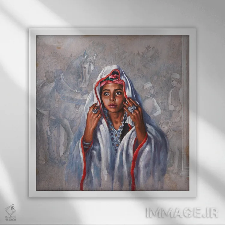 براساس پالت ترکیبی اثر، قاب تیک گرم (چوبی) پیشنهاد اول است و مشکی مات (فریم متوسط) مکمل. برای سفارشهای پروژهای با ابعاد و قابهای اختصاصی با ایماژ در تماس باشید.