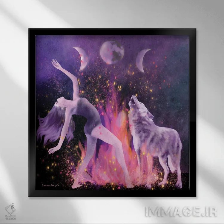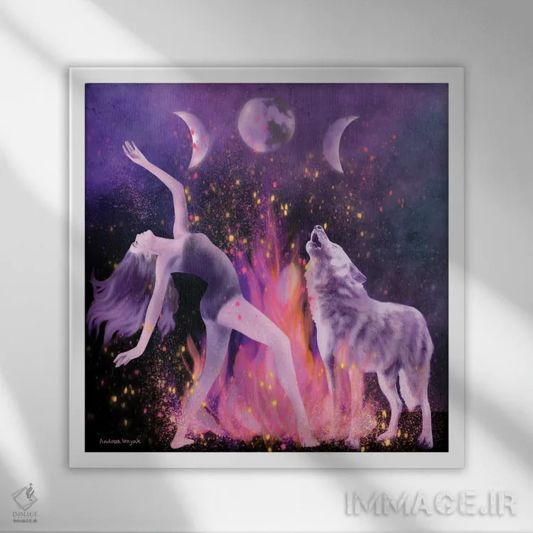 این تابلو با عنوان «در میان شعلهها» اثرِ «آندریا هرنیاک» جلوهٔ رنگها را طبیعیتر و متعادلتر نشان میدهد؛ برای دکورهایی که بافت و جزئیات در آن مهم است پیشنهاد میشود. این تابلو میتواند شروعِ خوبی برای یک دیوار گالری باشد.