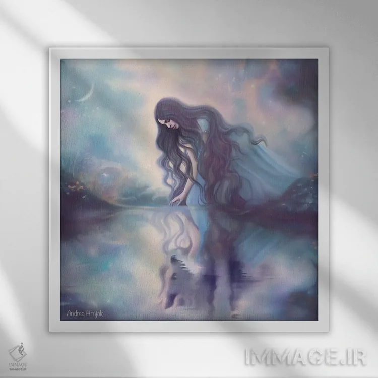 براساس پالت سرد اثر، قاب سفید مات (فریم باریک) پیشنهاد اول است و نقرهای برسخورده (متالیک) مکمل. برای سفارشهای پروژهای با ابعاد و قابهای اختصاصی با ایماژ در تماس باشید.