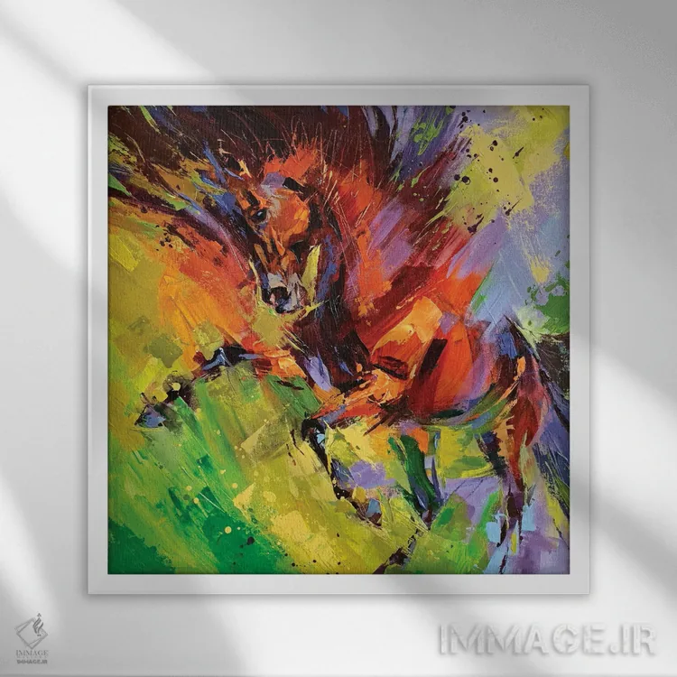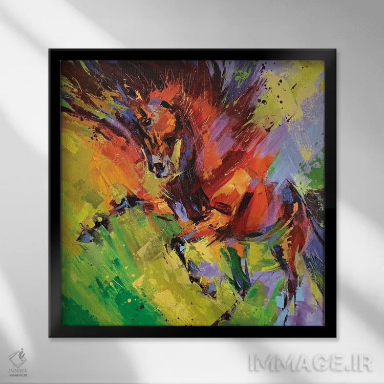 براساس پالت ترکیبی اثر، قاب تیک گرم (چوبی) پیشنهاد اول است و مشکی مات (فریم متوسط) مکمل. برای سفارشهای پروژهای با ابعاد و قابهای اختصاصی با ایماژ در تماس باشید.