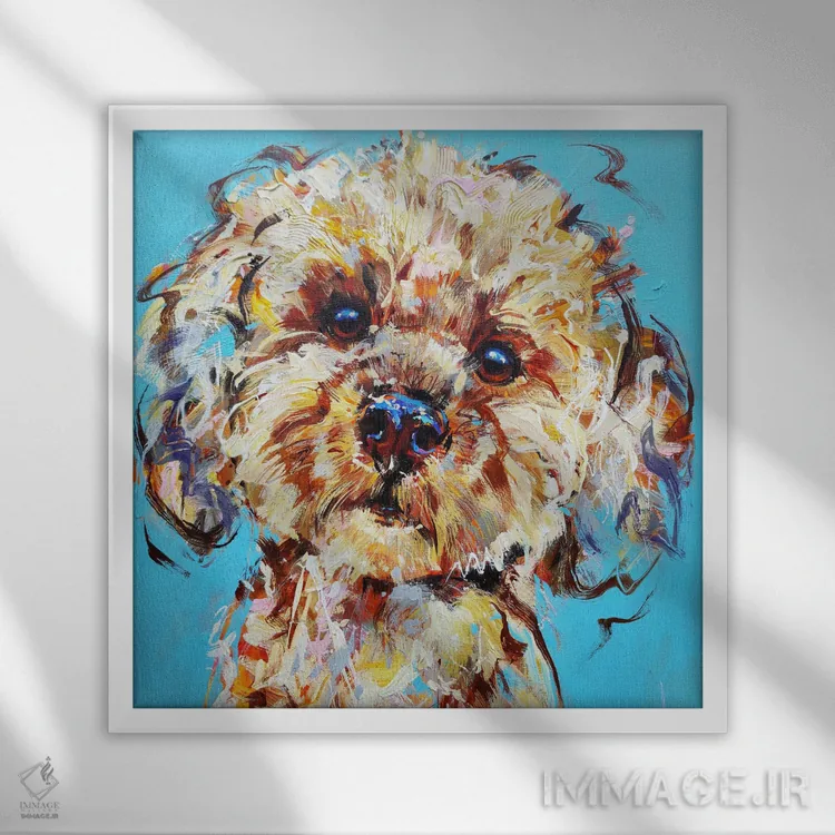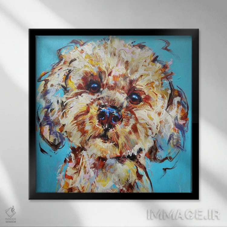 برای دکورهای صمیمی، «کاوودل (نژاد سگ دورگه)» اثرِ «آنا چر» به دیوار، انرژیِ نرم و زنده میدهد؛ برای اتاق کودک (بدون لحن کودکانه) انتخابی خوشسلیقه است. با نورپردازی نقطهای، جذابتر هم میشود.