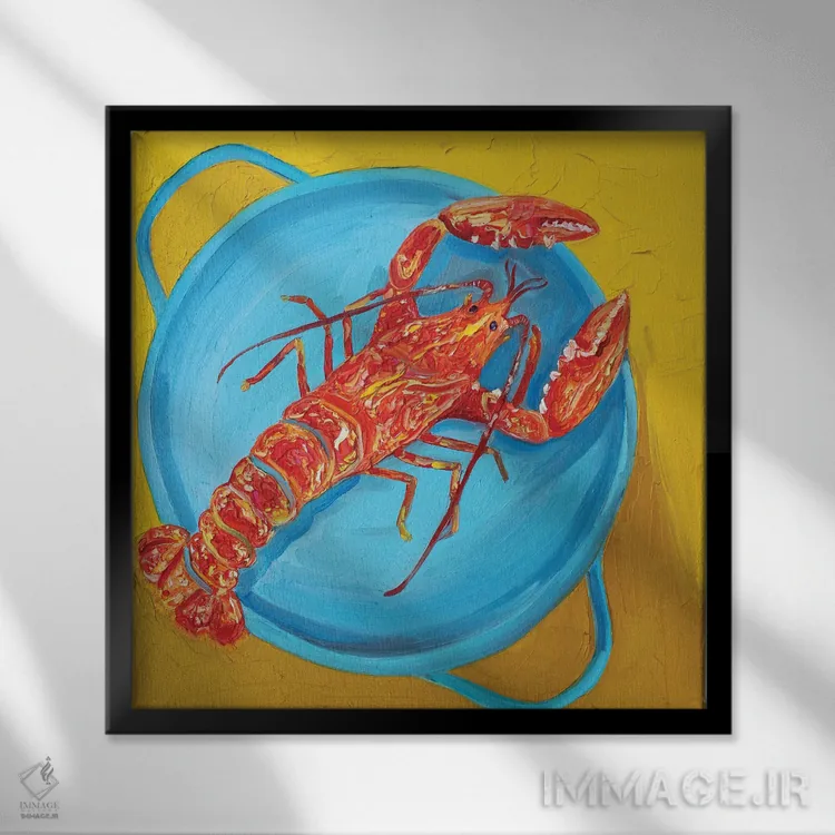 تابلو خرچنگ نارنجی در دیگ اثر آلیس استراکر - نمای قاب‌دار مشکی