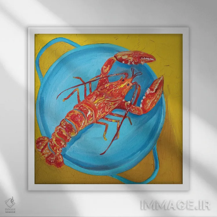 تابلو خرچنگ نارنجی در دیگ اثر آلیس استراکر - نمای قاب‌دار سفید