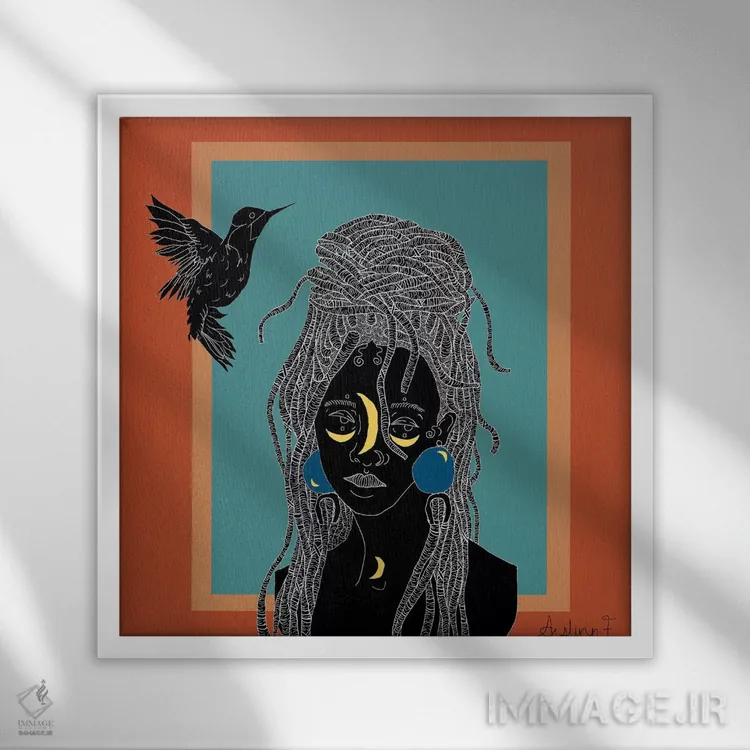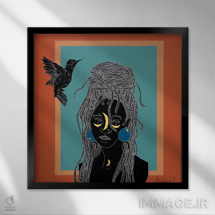 براساس پالت ترکیبی اثر، قاب تیک گرم (چوبی) پیشنهاد اول است و مشکی مات (فریم متوسط) مکمل. برای سفارشهای پروژهای با ابعاد و قابهای اختصاصی با ایماژ در تماس باشید.