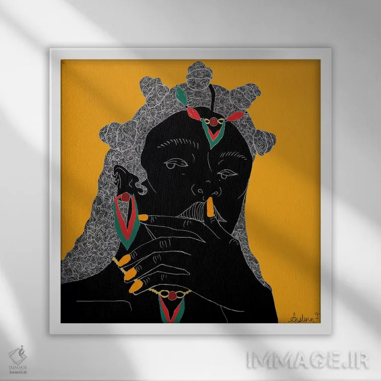 براساس پالت ترکیبی اثر، قاب تیک گرم (چوبی) پیشنهاد اول است و مشکی مات (فریم متوسط) مکمل. برای سفارشهای پروژهای با ابعاد و قابهای اختصاصی با ایماژ در تماس باشید.