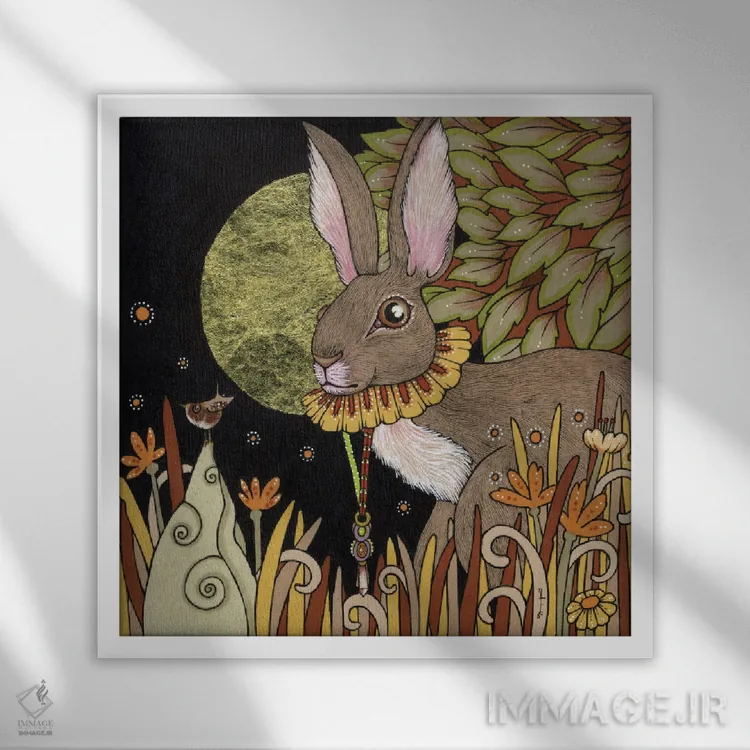 براساس پالت ترکیبی اثر، قاب بلوط روشن (چوبی) پیشنهاد اول است و استخوانی ملایم مکمل. برای سفارشهای پروژهای با ابعاد و قابهای اختصاصی با ایماژ در تماس باشید.