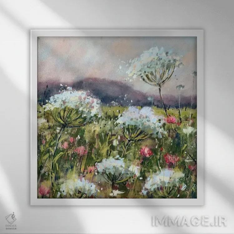 براساس پالت ترکیبی اثر، قاب بلوط روشن (چوبی) پیشنهاد اول است و استخوانی ملایم مکمل. برای سفارشهای پروژهای با ابعاد و قابهای اختصاصی با ایماژ در تماس باشید.
