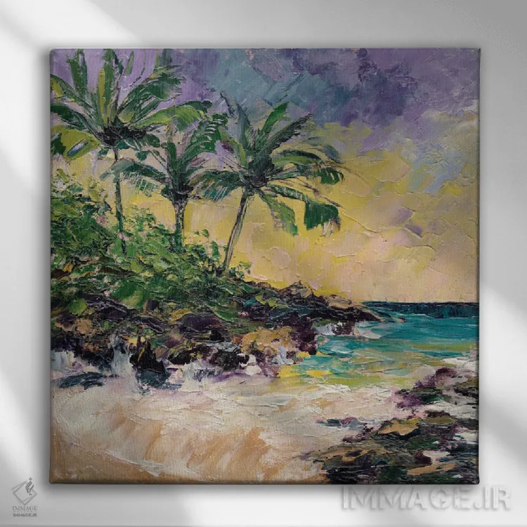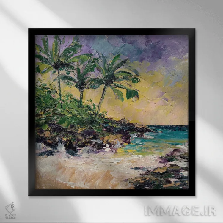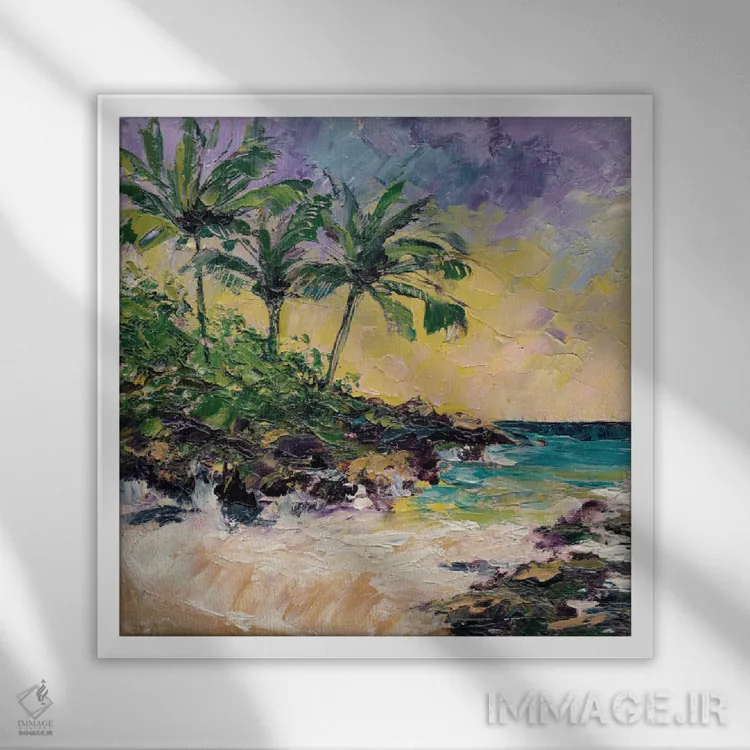 براساس پالت ترکیبی اثر، قاب بلوط روشن (چوبی) پیشنهاد اول است و استخوانی ملایم مکمل. برای سفارشهای پروژهای با ابعاد و قابهای اختصاصی با ایماژ در تماس باشید.