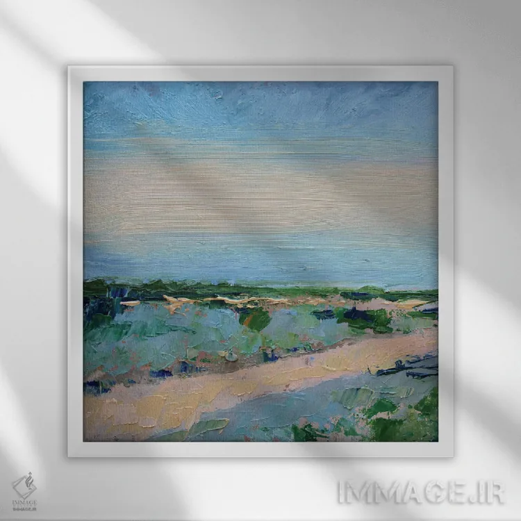 براساس پالت سرد اثر، قاب سفید مات (فریم باریک) پیشنهاد اول است و نقرهای برسخورده (متالیک) مکمل. برای سفارشهای پروژهای با ابعاد و قابهای اختصاصی با ایماژ در تماس باشید.