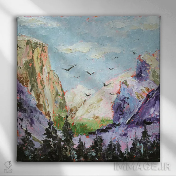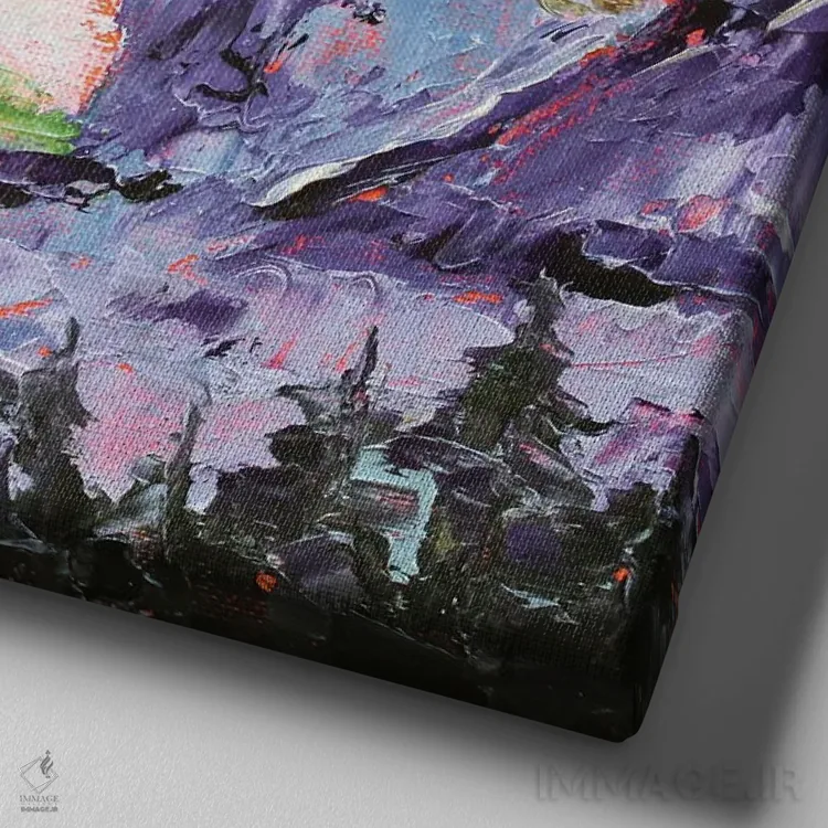 تابلو کوه‌های بنفش اثر الکساندرا جاگودا - نمای نزدیک بافت بوم