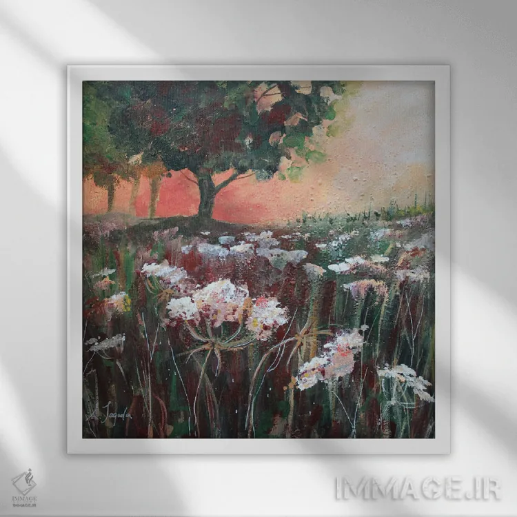 براساس پالت گرم اثر، قاب تیک گرم (چوبی) پیشنهاد اول است و مشکی مات (فریم متوسط) مکمل. برای سفارشهای پروژهای با ابعاد و قابهای اختصاصی با ایماژ در تماس باشید.