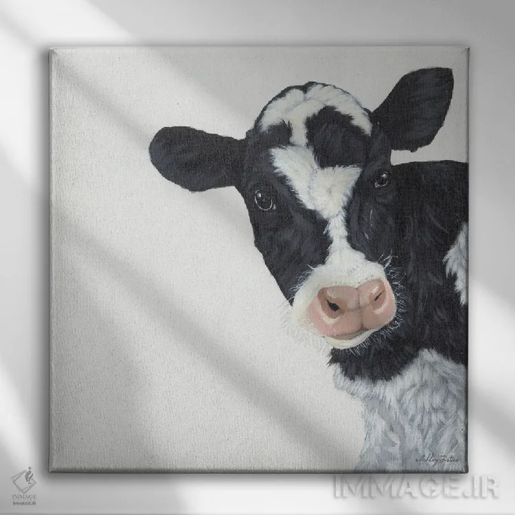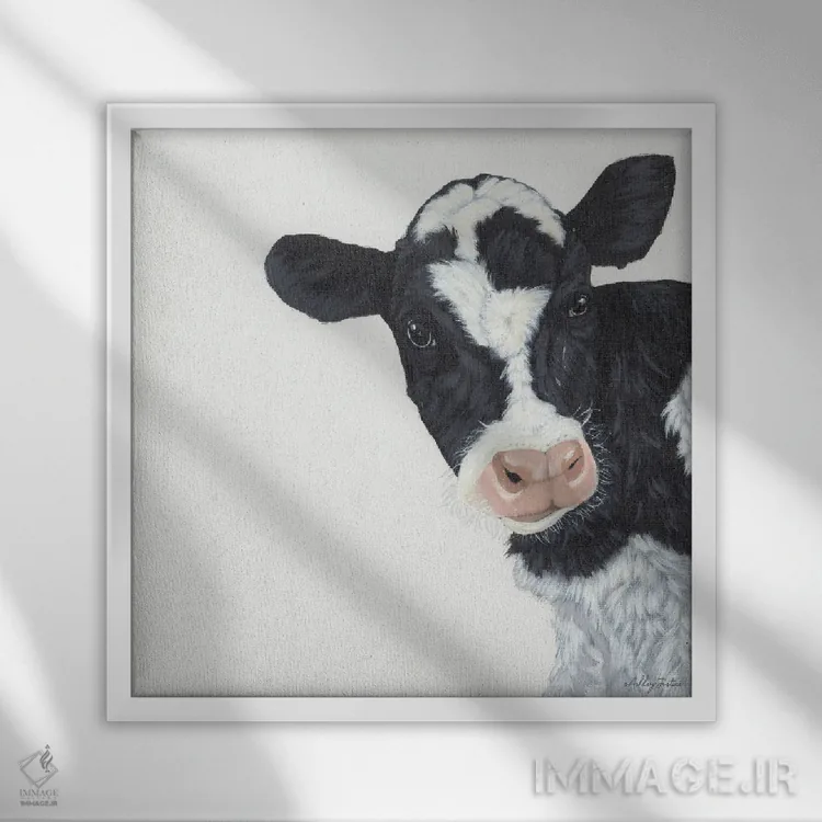 تابلو گاو اثر اشلی جاستیس - نمای قاب‌دار سفید