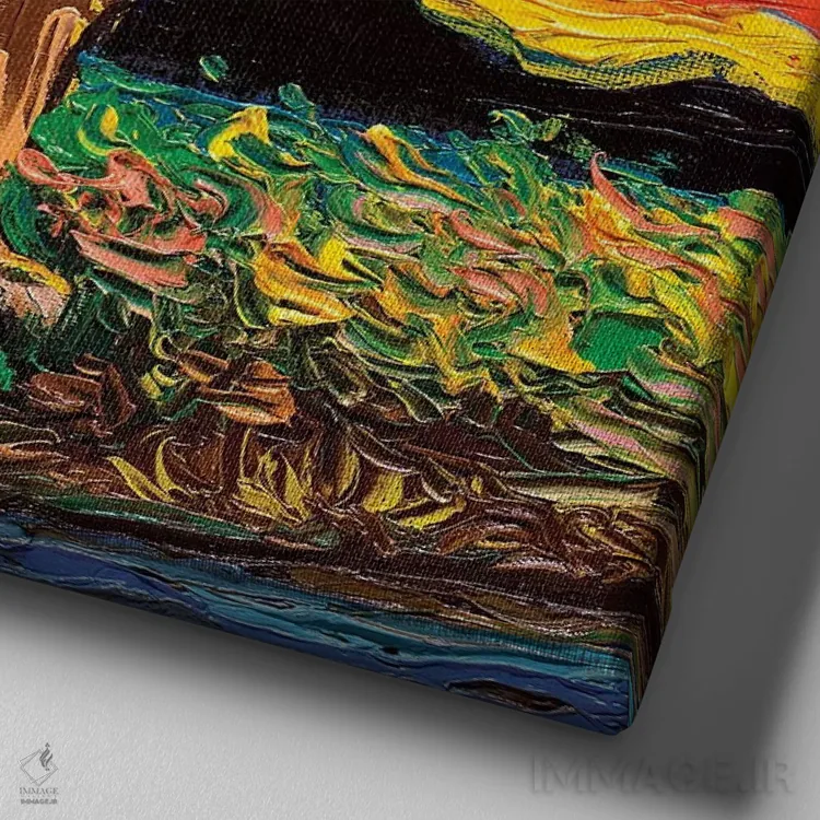 بوم گالری ایماژ طوری طراحی شده که اثر روی دیوار «پرداختشده» و حرفهای دیده شود—نه پرزرقوبرقِ بیپایه؛ بلکه دقیق و خوشپرداخت. بافت ظریف کنواس کمک میکند حس اثر هنری را در نگاه نزدیک نگه میدارد. چاپ جیکلی (Giclée) کمک میکند گرباورهاها را تمیزتر و طبیعیتر نشان میدهد و همین «پرداخت» تفاوت را میسازد. در نهایت، نتیجه چیزی شبیه تفاوت نسخهی معمولی با نسخهی باکیفیتتر است: نه رنگِ بیشتر، بلکه پرداخت بهتر؛ در کنار نورپردازی درست، جلوهی گالریوار بیشتری حس میشود.