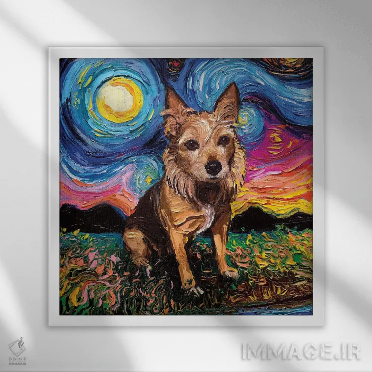 اگر میخواهید دیوار کمی سرزندگیِ محترمانه داشته باشد، «تِریِر استرالیایی» اثرِ «آجا تریر» بدون کودکانه شدن، بازیگوش و خوشپرداخت میماند، برای راهروها و ورودیهای گرم گزینهٔ مناسبیست. حسش صمیمی است، اما کیفیتش جدی و خوشپرداخت.