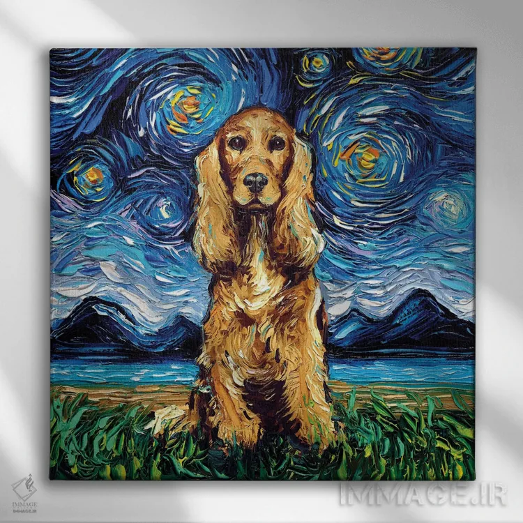تابلو شب کوکر اسپانیل طلایی اثر آجا تریر