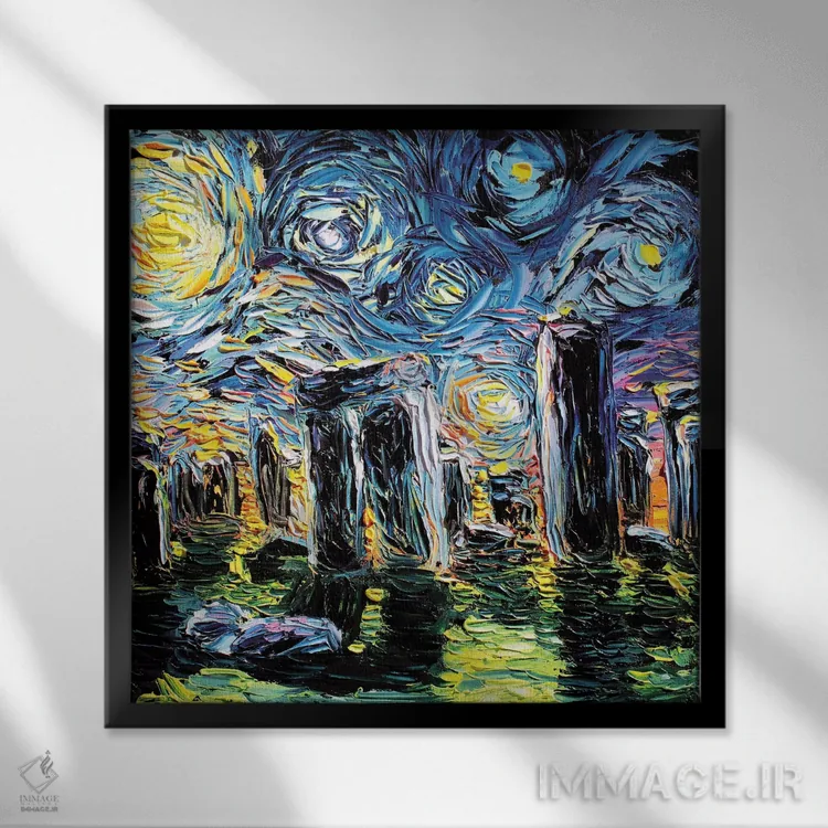 براساس پالت ترکیبی اثر، قاب تیک گرم (چوبی) پیشنهاد اول است و مشکی مات (فریم متوسط) مکمل. برای سفارشهای پروژهای با ابعاد و قابهای اختصاصی با ایماژ در تماس باشید.