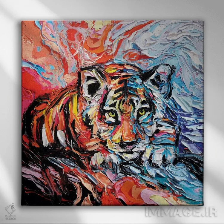 براساس پالت ترکیبی اثر، قاب تیک گرم (چوبی) پیشنهاد اول است و مشکی مات (فریم متوسط) مکمل. برای سفارشهای پروژهای با ابعاد و قابهای اختصاصی با ایماژ در تماس باشید.