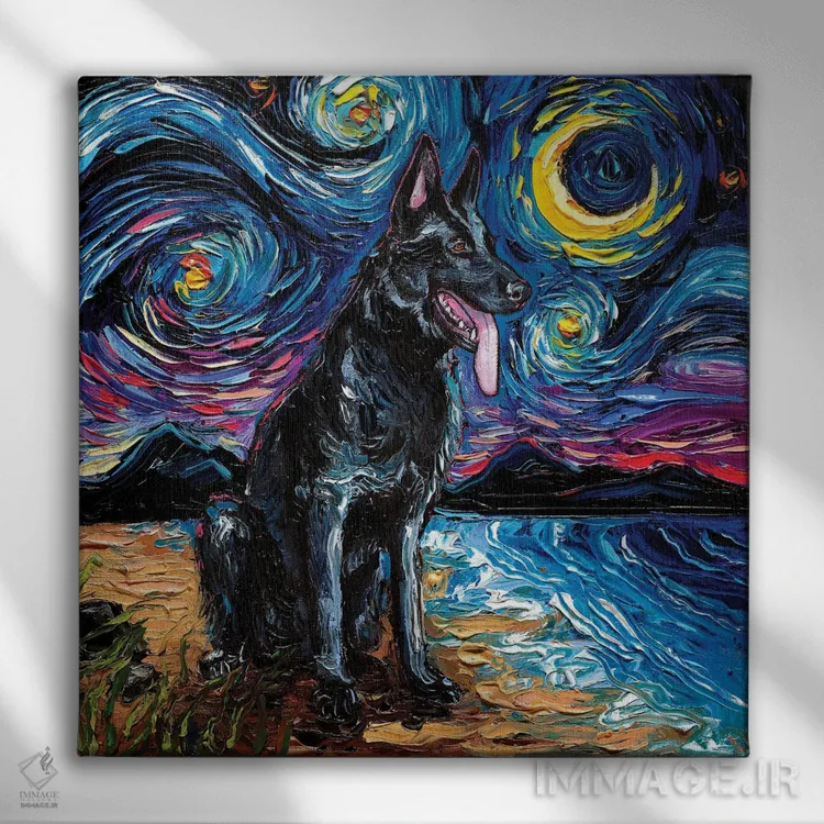 تابلو دکوراتیو شب شپرد آلمانی سیاه اثر آجا تریر