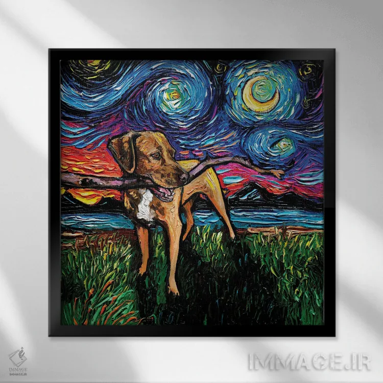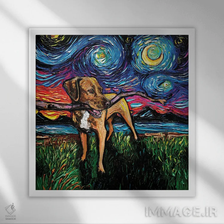براساس پالت ترکیبی اثر، قاب تیک گرم (چوبی) پیشنهاد اول است و مشکی مات (فریم متوسط) مکمل. برای سفارشهای پروژهای با ابعاد و قابهای اختصاصی با ایماژ در تماس باشید.