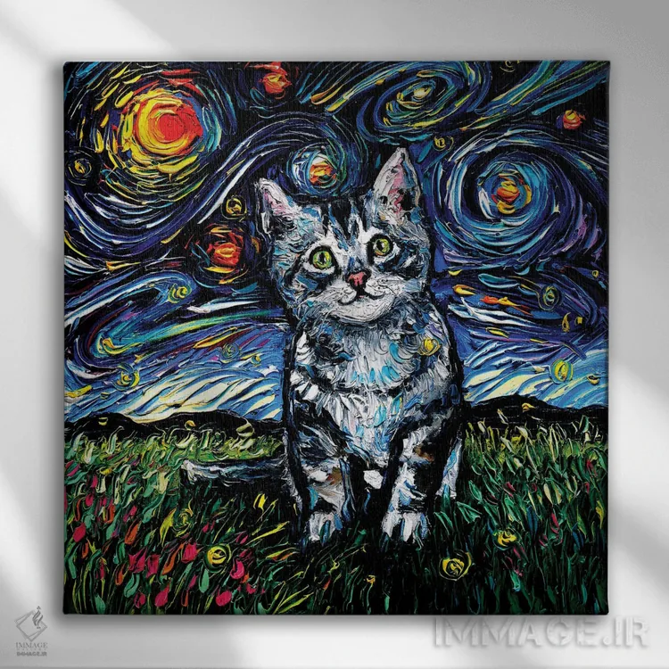 تابلو دکوراتیو شب بچه گربه خاکستری راه راه اثر آجا تریر