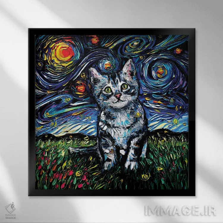 تابلو شب بچه‌گربه خاکستری راه‌راه اثر آجا تریر - نمای روبه‌رو روی دیوار
