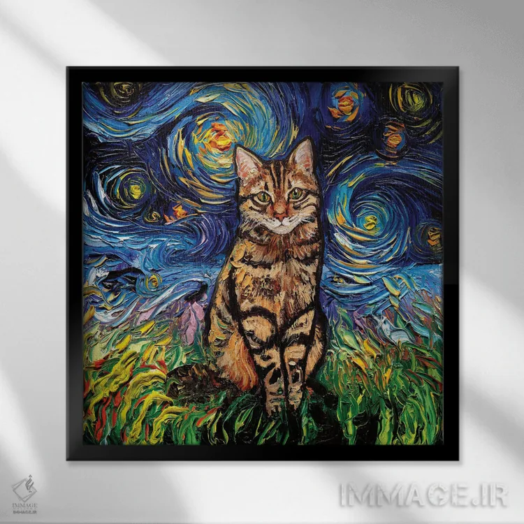 براساس پالت ترکیبی اثر، قاب تیک گرم (چوبی) پیشنهاد اول است و مشکی مات (فریم متوسط) مکمل. برای سفارشهای پروژهای با ابعاد و قابهای اختصاصی با ایماژ در تماس باشید.