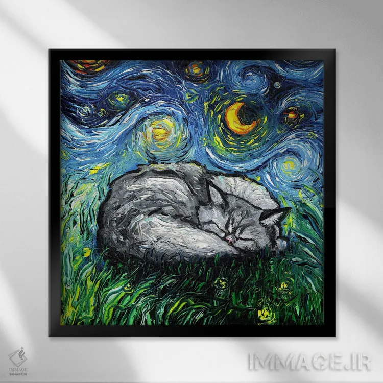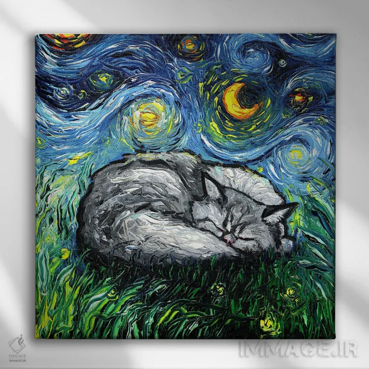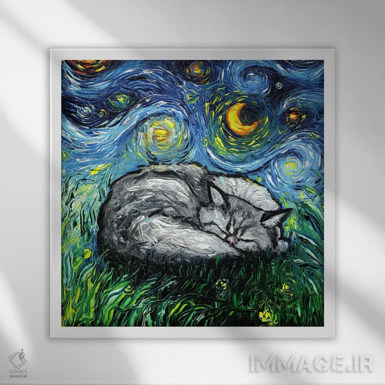 تابلو دکوراتیو شب خواب آلود گربه ایرانی اثر آجا تریر