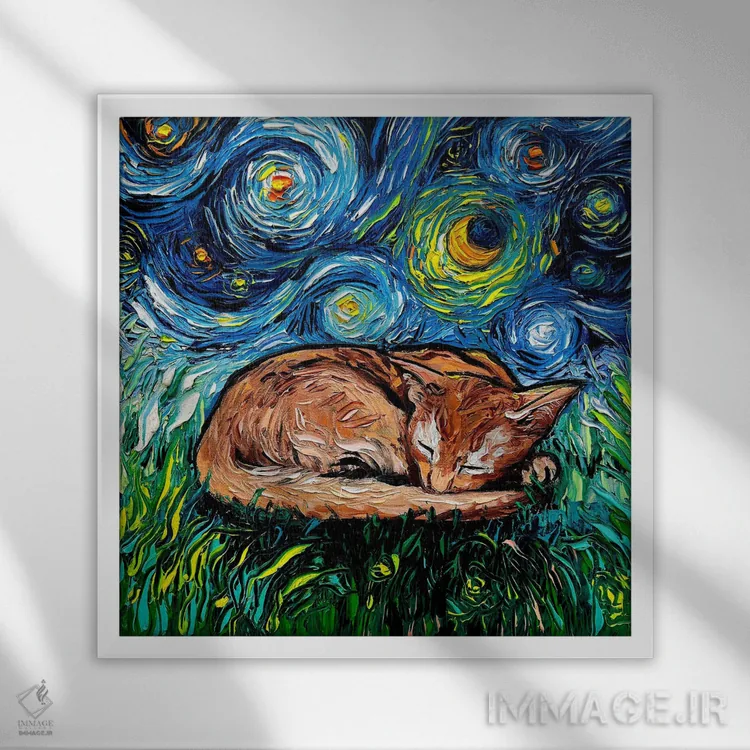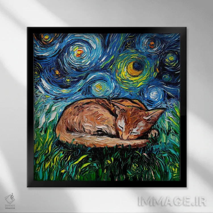 اگر میخواهید دیوار کمی سرزندگیِ محترمانه داشته باشد، «شب خوابآلود گربه آبسینی» اثرِ «آجا تریر» بدون کودکانه شدن، بازیگوش و خوشپرداخت میماند، برای هدیهدادن به دوستداران حیوانات گزینهٔ مناسبیست. برای دیوار گالریوار هم گزینهٔ خوبیست.