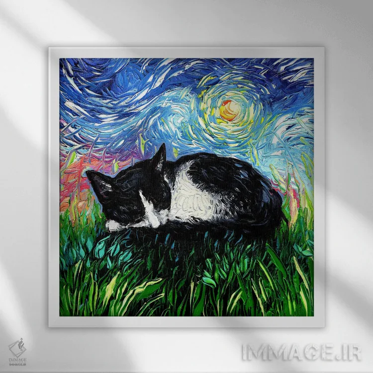 تابلو شب خوابآلود بچهگربه تاکسیدو اثر آجا تریر
