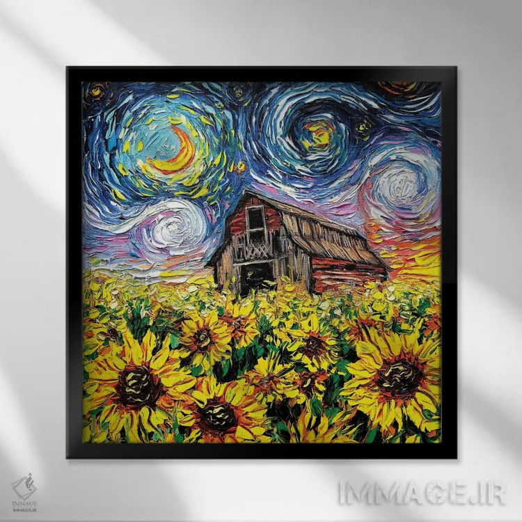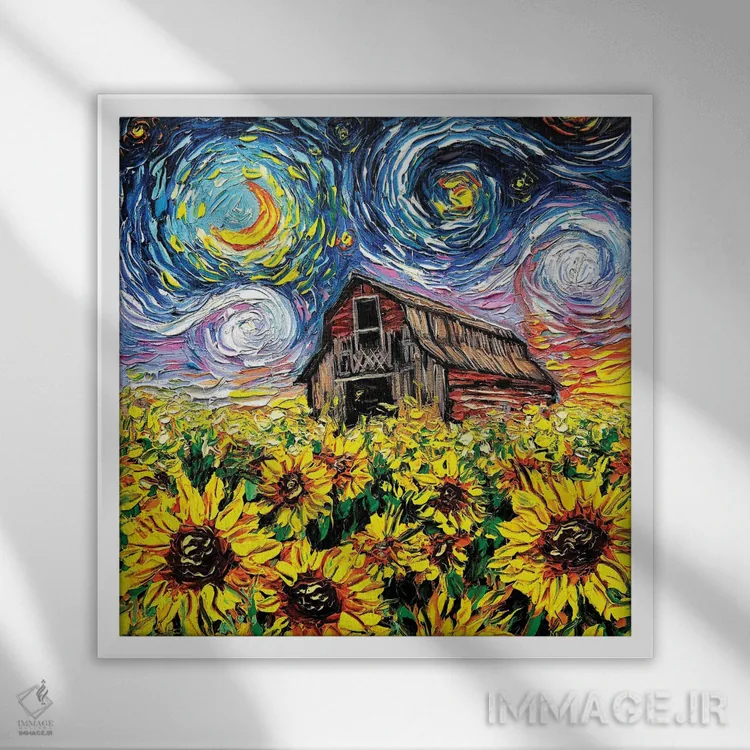 براساس پالت ترکیبی اثر، قاب تیک گرم (چوبی) پیشنهاد اول است و مشکی مات (فریم متوسط) مکمل. برای سفارشهای پروژهای با ابعاد و قابهای اختصاصی با ایماژ در تماس باشید.