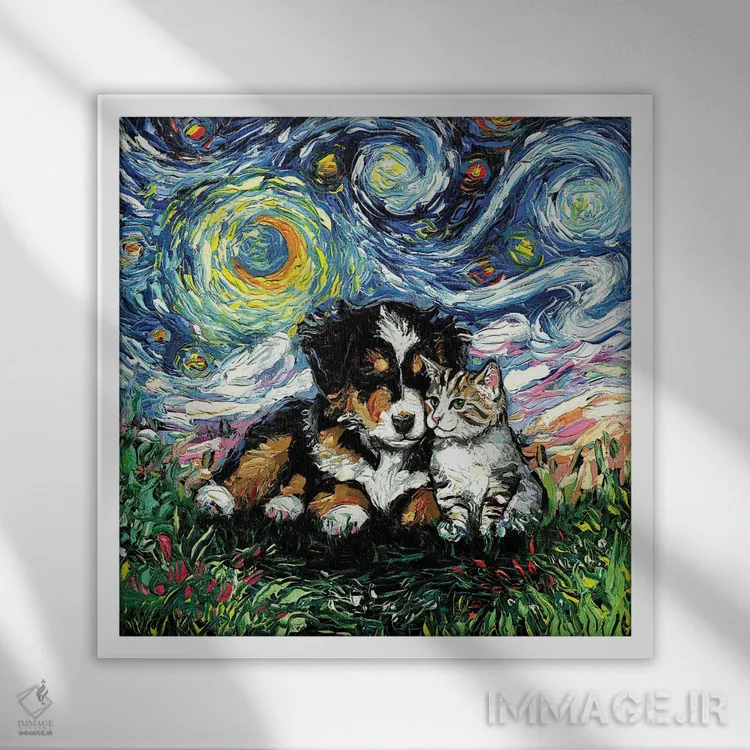 براساس پالت ترکیبی اثر، قاب تیک گرم (چوبی) پیشنهاد اول است و مشکی مات (فریم متوسط) مکمل. برای سفارشهای پروژهای با ابعاد و قابهای اختصاصی با ایماژ در تماس باشید.