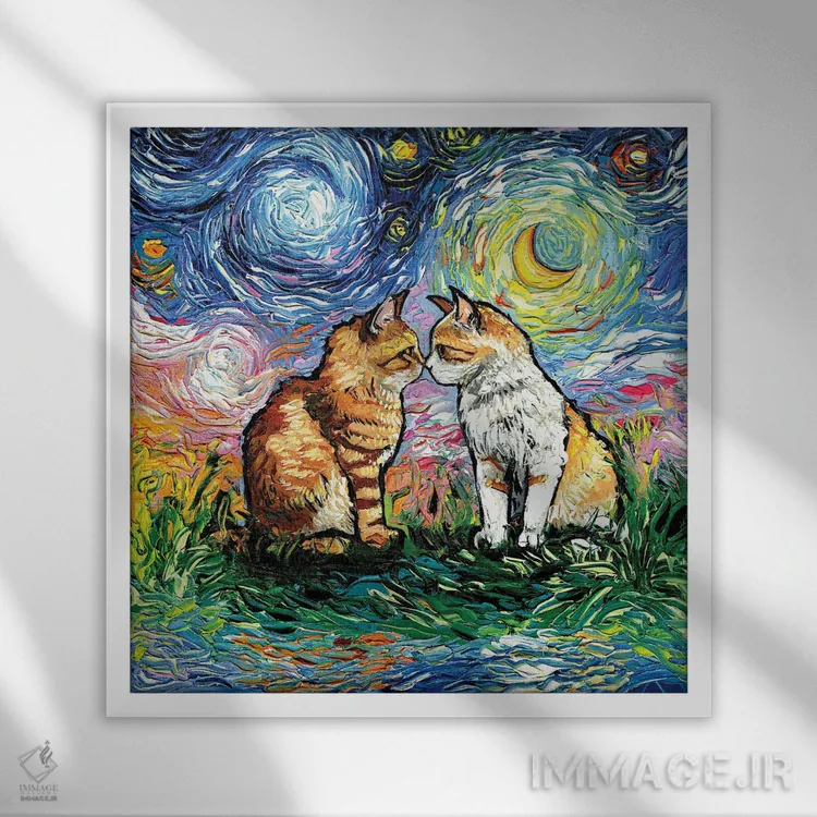 براساس پالت ترکیبی اثر، قاب تیک گرم (چوبی) پیشنهاد اول است و مشکی مات (فریم متوسط) مکمل. برای سفارشهای پروژهای با ابعاد و قابهای اختصاصی با ایماژ در تماس باشید.