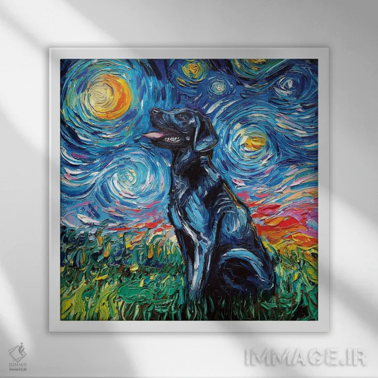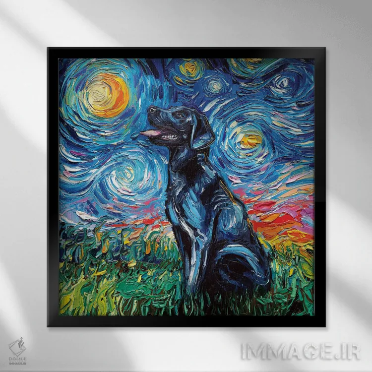 اگر به آثار حیوانات علاقه دارید، «شب لابرادور سیاه ۱» اثرِ «آجا تریر» گرما و شخصیت به فضا اضافه میکند، برای خانههایی با چوب و پارچههای گرم گزینهٔ مناسبیست. با قاب چوبی یا مشکی، حس مرتبتری پیدا میکند.