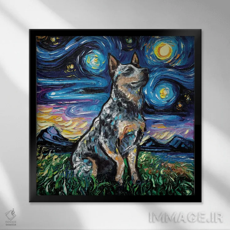 برای دیوارهای ساده، «شب بلو هیلر (نژاد سگ)» اثرِ «آجا تریر» در کنار رنگهای خنثی، تضاد دلچسبی میسازد؛ برای اتاق کودک (بدون لحن کودکانه) انتخابی خوشسلیقه است. اگر دنبال اثر دوستداشتنیِ «بیغلو» هستید، این یکی دقیق مینشیند.