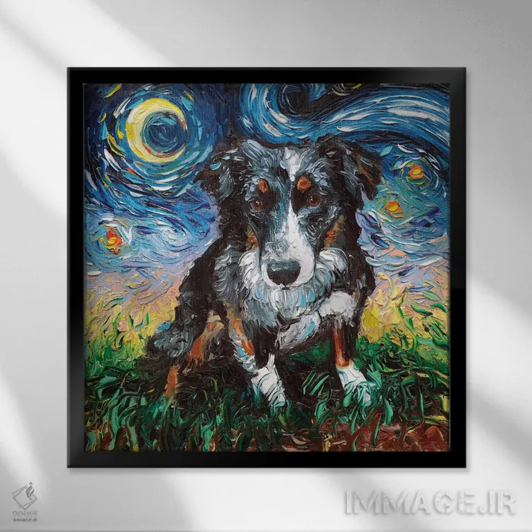 «شب شپرد استرالیایی» اثرِ «آجا تریر» میتواند به فضا، گرمیِ ملایم اضافه کند؛ برای دیوار کنار میز کار پیشنهاد میشود. با قاب چوبی یا مشکی، حس مرتبتری پیدا میکند.