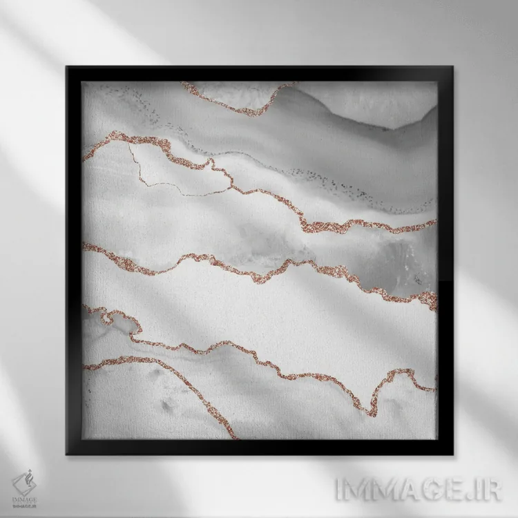 تابلو بافت عقیق رزگلد سفید شماره ۶ اثر آلوک دیزاین - نمای قاب‌دار مشکی