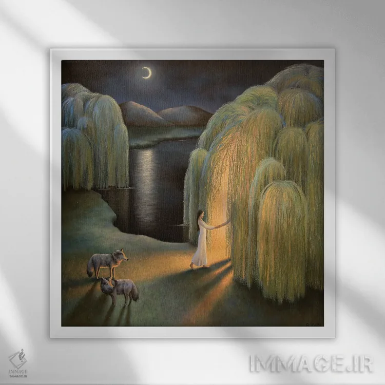 تابلو بیدهای گریان اثر آنتوانت کلی - نمای قاب‌دار سفید