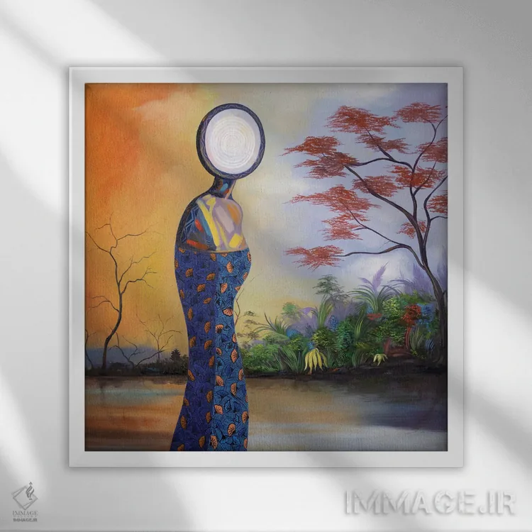 براساس پالت ترکیبی اثر، قاب تیک گرم (چوبی) پیشنهاد اول است و مشکی مات (فریم متوسط) مکمل. برای سفارشهای پروژهای با ابعاد و قابهای اختصاصی با ایماژ در تماس باشید.