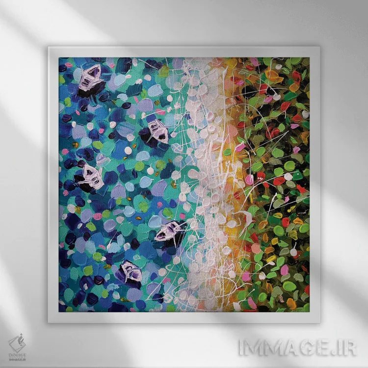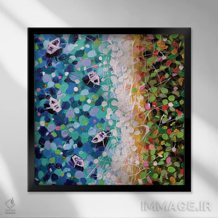 براساس پالت ترکیبی اثر، قاب تیک گرم (چوبی) پیشنهاد اول است و مشکی مات (فریم متوسط) مکمل. برای سفارشهای پروژهای با ابعاد و قابهای اختصاصی با ایماژ در تماس باشید.