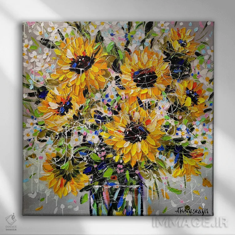 تابلو آفتابگردانها در گلدان اثر آلیاکساندرا تسسارسکایا