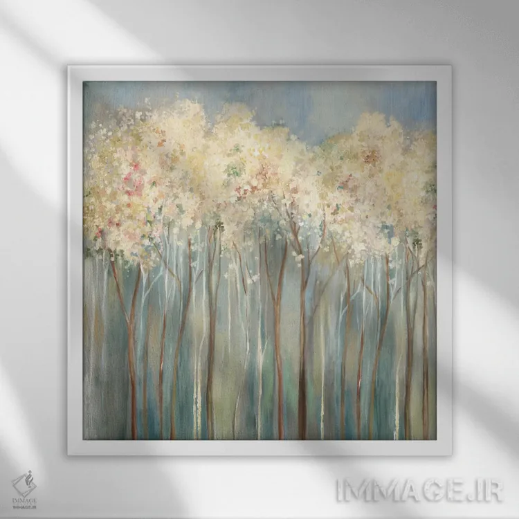براساس پالت گرم اثر، قاب بلوط روشن (چوبی) پیشنهاد اول است و استخوانی ملایم مکمل. برای سفارشهای پروژهای با ابعاد و قابهای اختصاصی با ایماژ در تماس باشید.