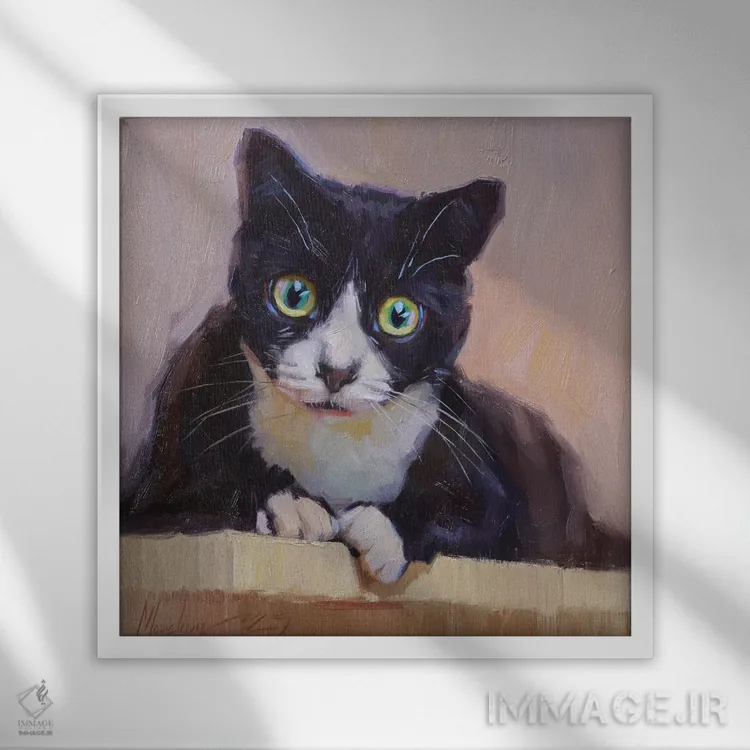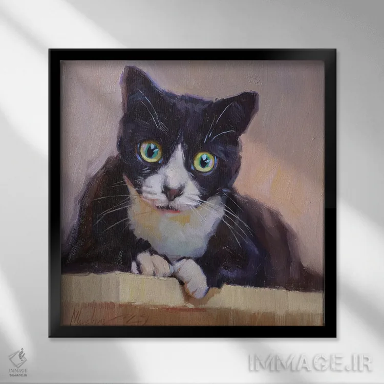 اگر به آثار حیوانات علاقه دارید، «پرترهٔ گربهٔ سیاه با چشمان سبز» اثرِ «الکس مووچون» به دیوار، انرژیِ نرم و زنده میدهد، برای کافههای کوچک و صمیمی گزینهٔ مناسبیست. به دیوار، قصه میدهد—اما قصهای آرام و شیک.