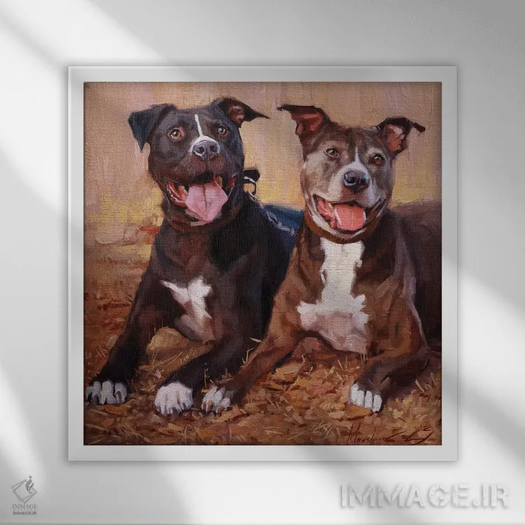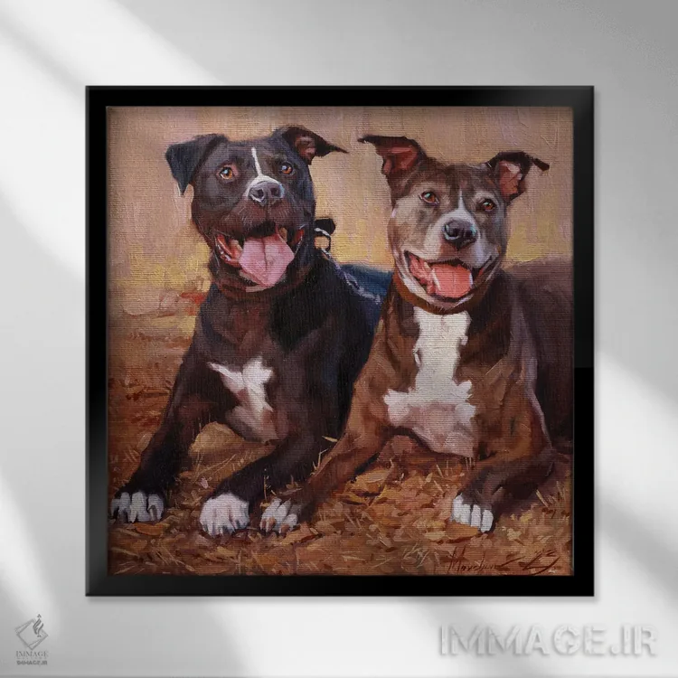 اگر میخواهید دیوار کمی سرزندگیِ محترمانه داشته باشد، «پرترهٔ دو تریر استفوردشر» اثرِ «الکس مووچون» به دیوار، انرژیِ نرم و زنده میدهد، برای اتاق کودک (بدون لحن کودکانه) گزینهٔ مناسبیست. حسش صمیمی است، اما کیفیتش جدی و خوشپرداخت.